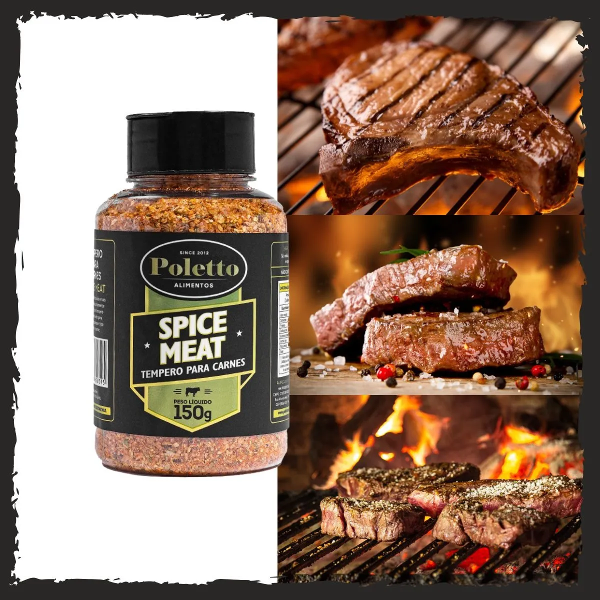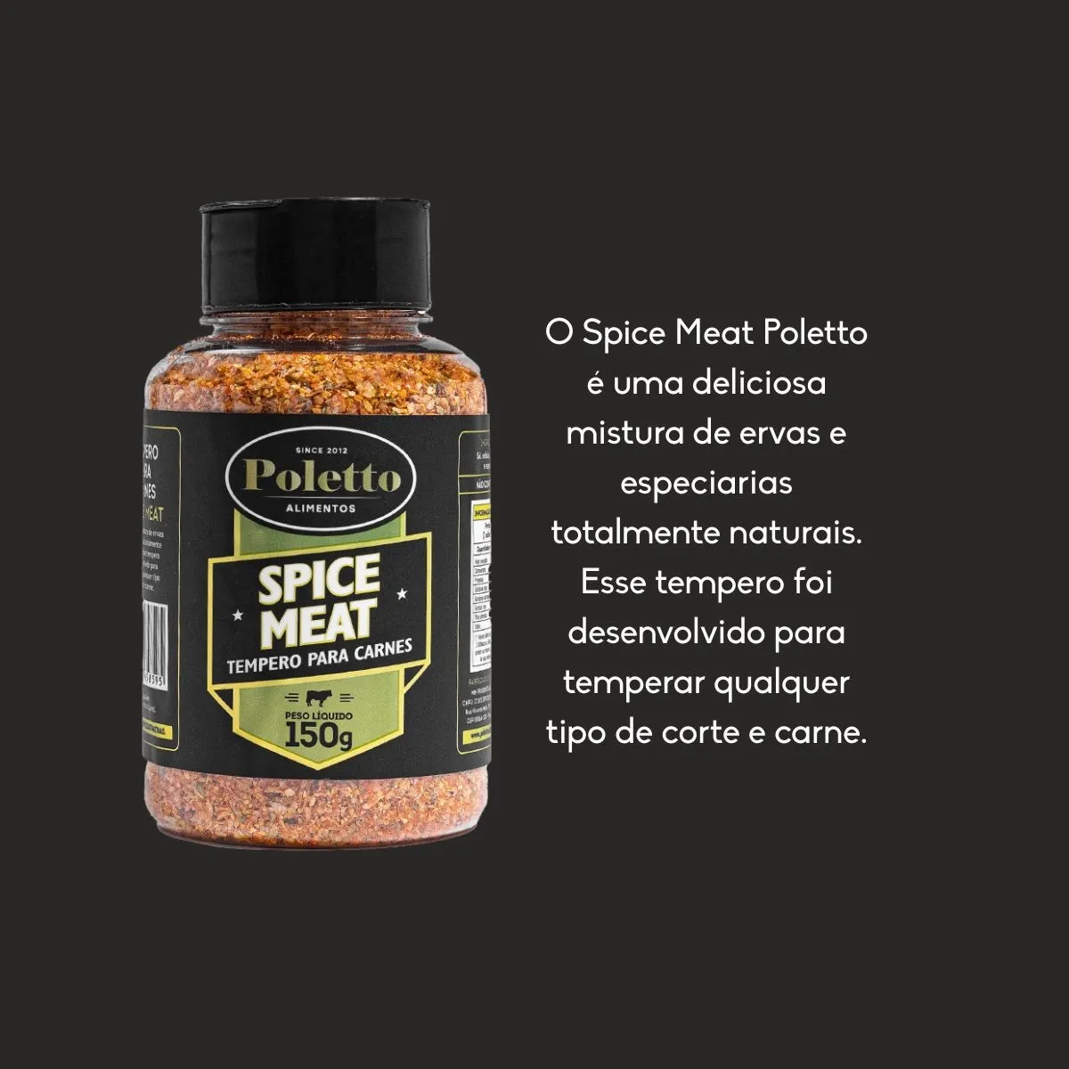 Ingredientes: Páprica defumada, alho, cebola, sal, açúcar mascavo e especiarias. - Spice Meat (150g): Mistura equilibrada para todos os tipos de cortes e carnes.